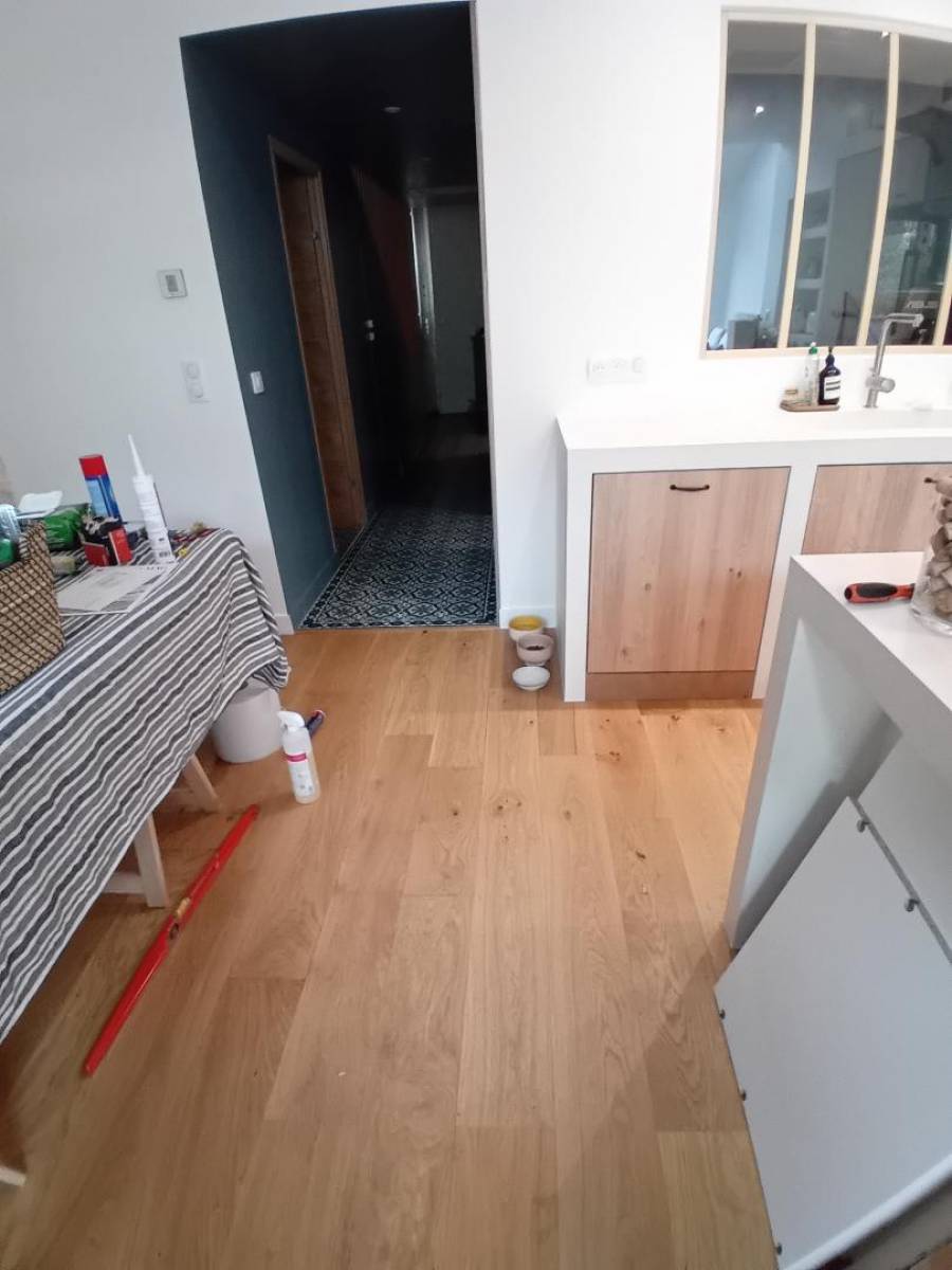 Cette pose d’une cuisine fournie par le client à Bordeaux témoigne aussi de notre capacité à valoriser tous types de projets, qu’ils soient issus de grandes enseignes ou de conceptions sur mesure. Grâce à notre expertise en agencement intérieur, nous garantissons un résultat impeccable, à la fois pratique, esthétique et durable.