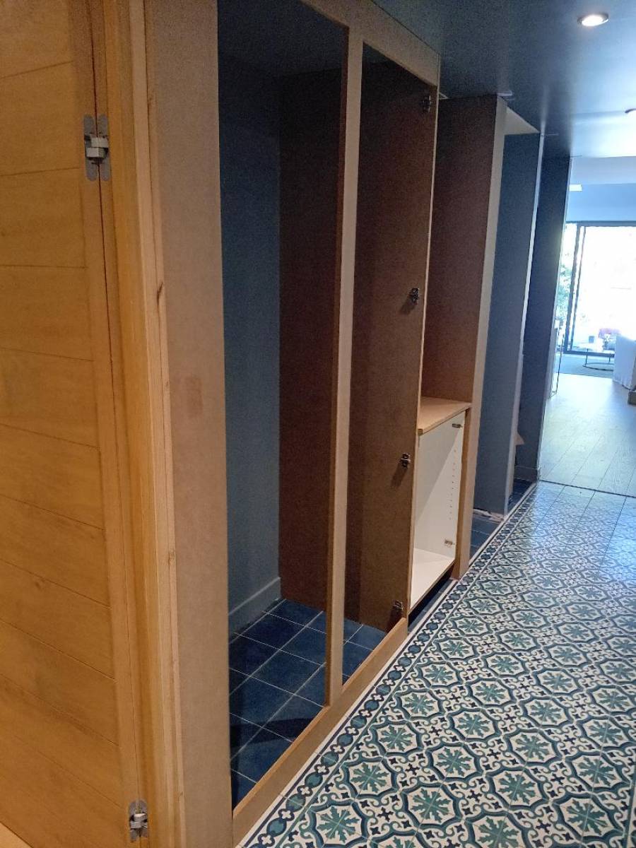 AMAC Agencement est intervenu pour la réalisation et pose d’un placard en médium à peindre à Léognan, conçu sur mesure pour s’intégrer harmonieusement dans un couloir à l’esprit chaleureux et contemporain.